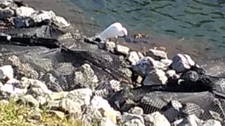 鷺が魚を狙い、しばし見つめていた、私でした。